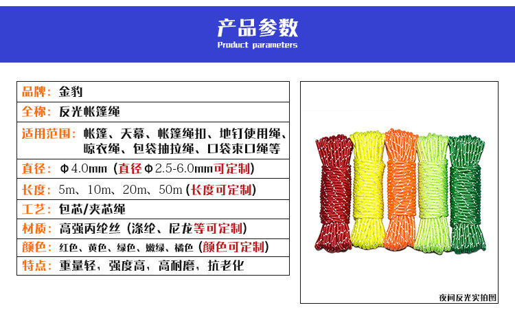 帶扣安全反光野營(yíng)帳篷繩